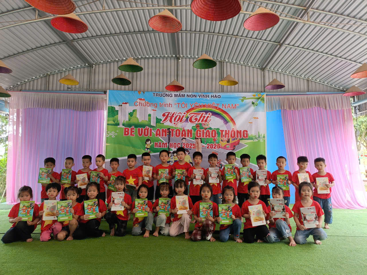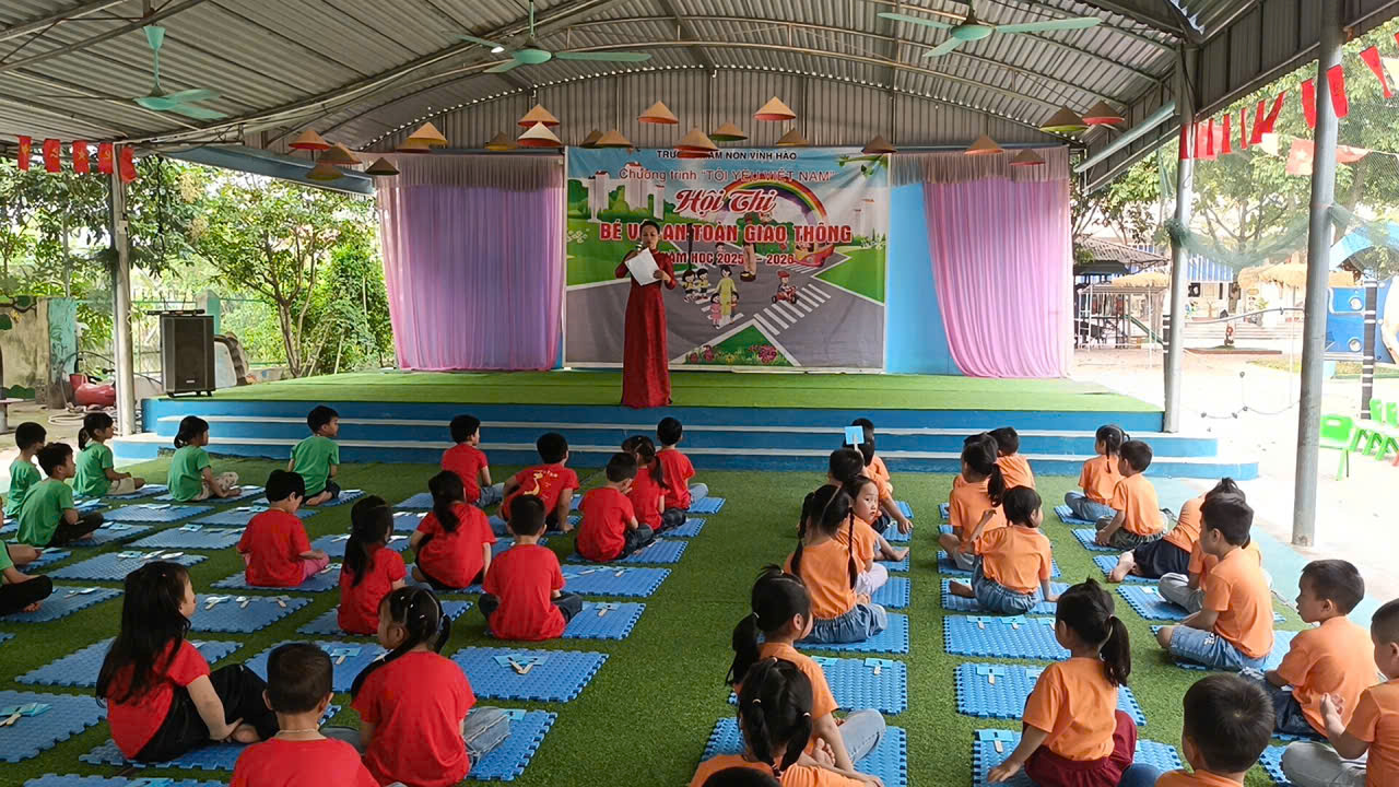 Sáng ngày 25 /03/2026 trong không khí hào hứng sôi nổi trường Mầm non Vĩnh Hào đã tổ chức thành công hội thi “Bé với an toàn giao thông” với sự tham gia của gần 200 bé khối 4 và 5 tuổi đại diện cho 283 học sinh mẫu giáo tham dự